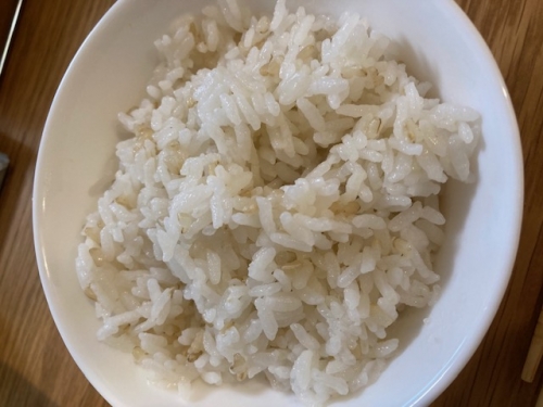 古代米の一つである「緑米」(みどりまい)はその名の通り緑色をしています。この緑色の色素はクロロフィルです。お米を食べているだけでクロロフィルを合わせて取ることができてしまいます。緑米自体に食物繊維が豊富に含まれていますから、お通じも快調です。白米1合に対して緑米を大さじ1杯入れるのがちょうどいいとされています。実際、その通りでちょうどよいいおいしさで食べることができました。
